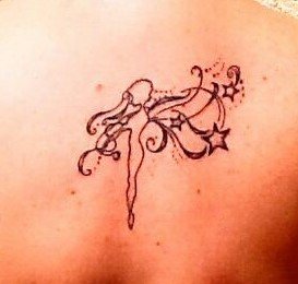 Une Fée est tatouée sur mon dos un jour où j’avais besoin de me différencier secrètement. Elle est comme une protection naturelle. Peut-être qu’elle s’agrandira avec des feuillages, des fleurs et des colibris ( mon animal totem).